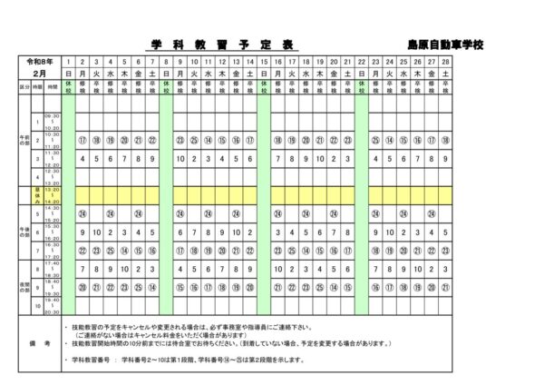 HOME普通車予定表(R8年02月中)